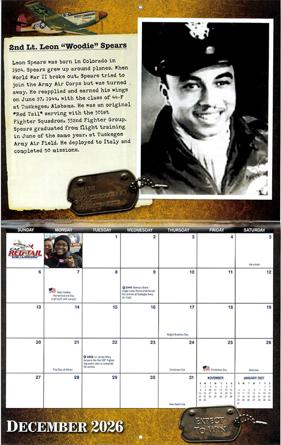Red Tail Angels - Each month with feature a historical photo of a Tuskegee Airmen with a short profile story.